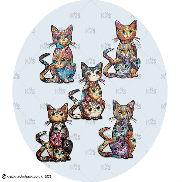 Whisker Wishes – Cat-Shaped Card Set Send a little magic through the mail with this paw-some set of five whimsical cat-shaped cards, each bursting with colour and character. Every set includes: