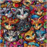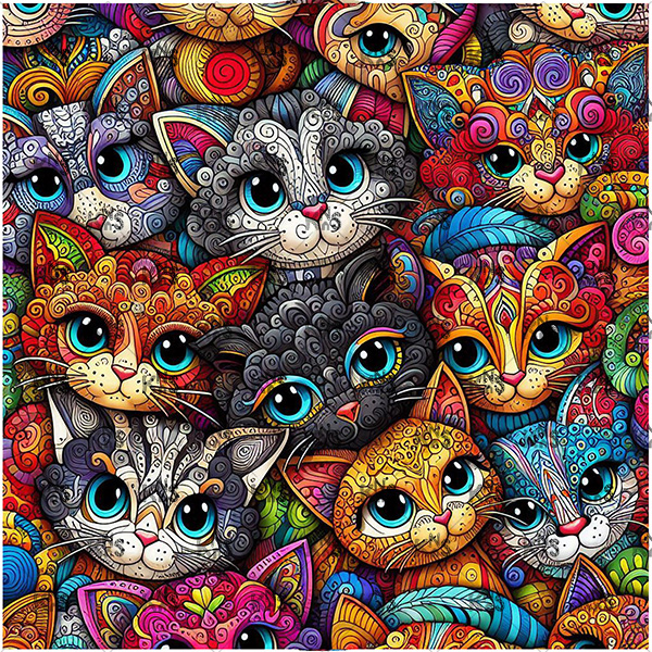 Unleash the feline frenzy! This vibrant 8″ x 8″ digital paper pack features a delightful riot of richly detailed, brightly coloured cartoon cats—each one brimming with personality.